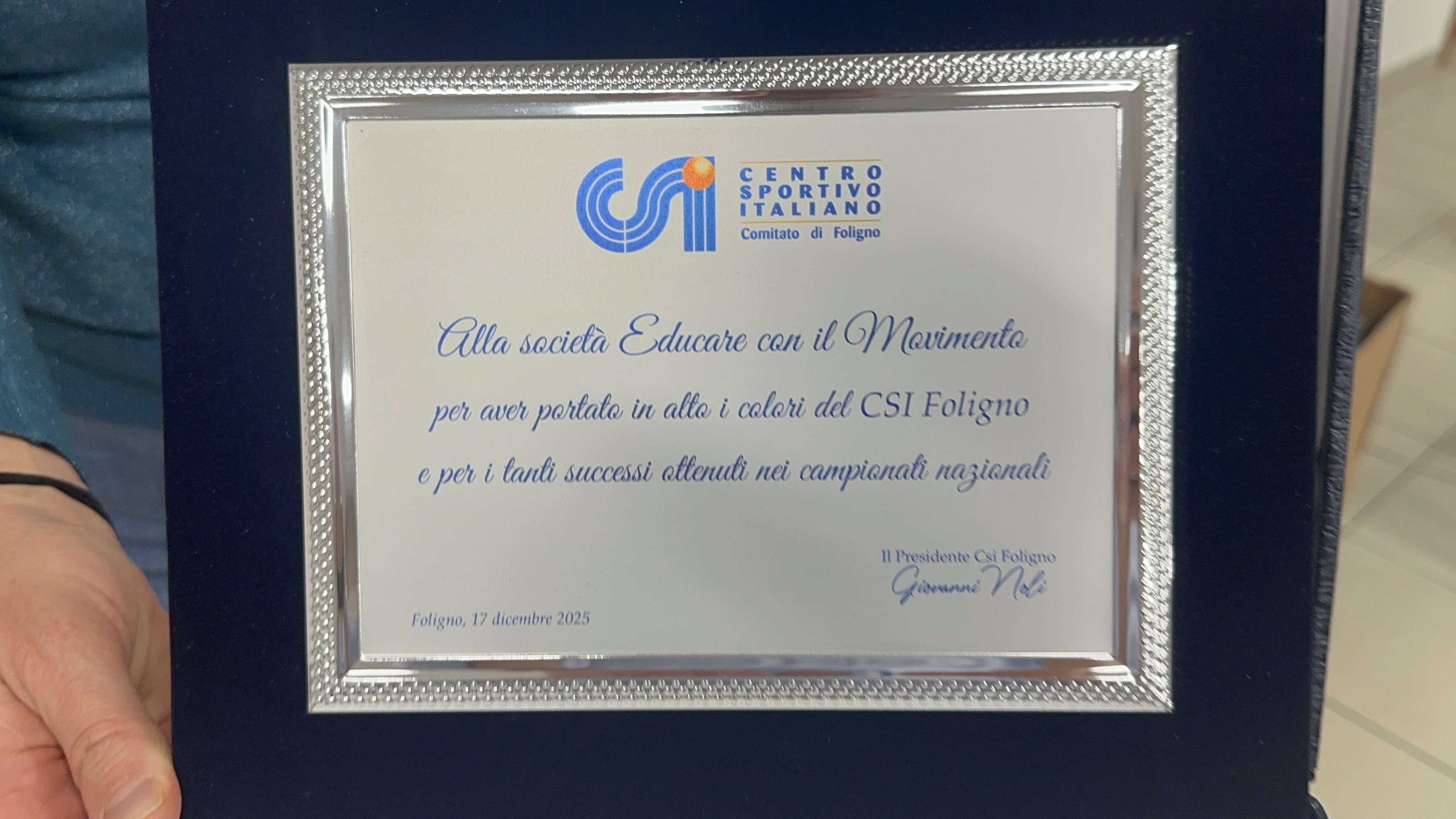 "Alla società Educare con il Movimento, per aver portato in alto i colori del CSI Foligno e per i tanti successi ottenuti nei campionati nazionali"